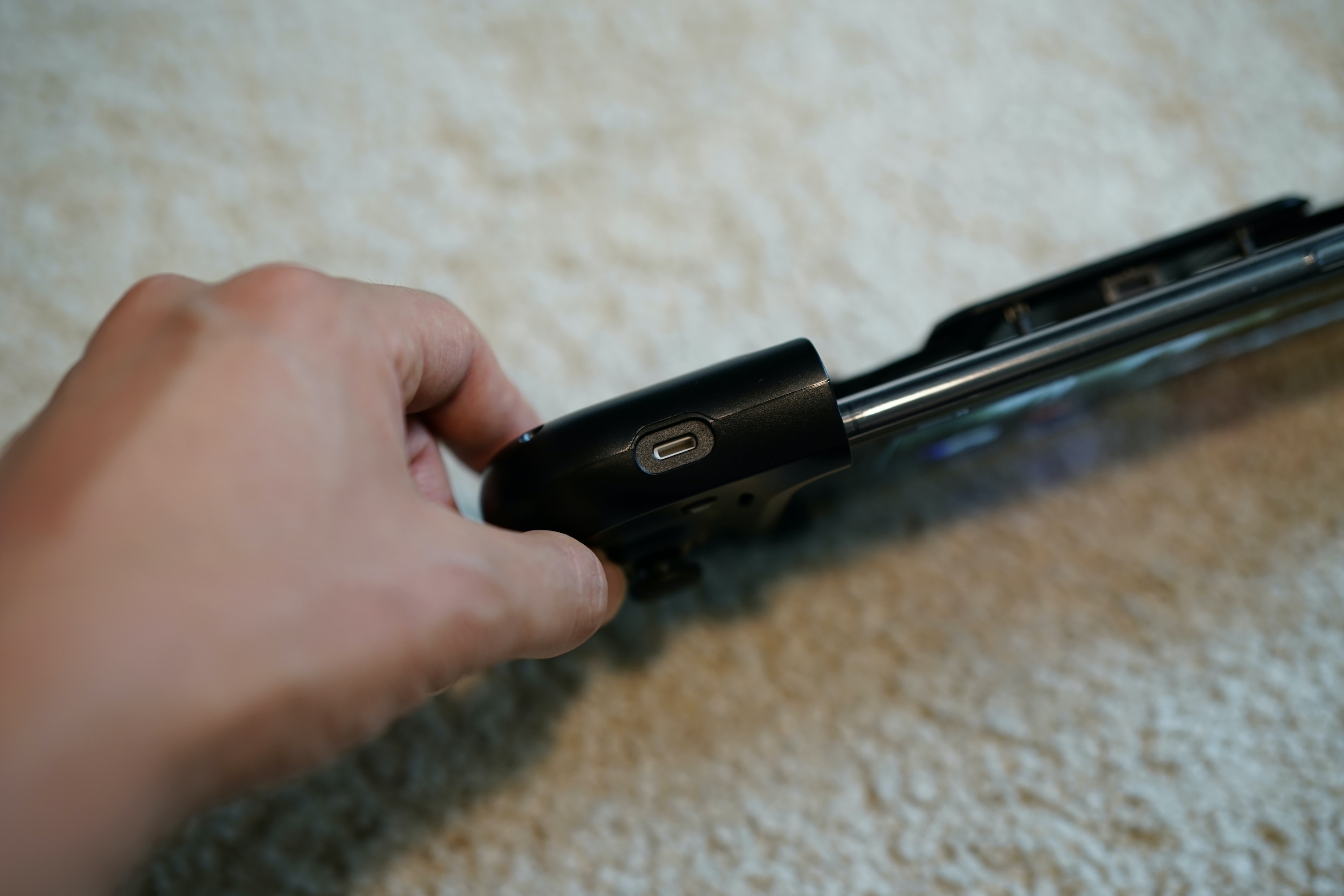 따로 배터리가 필요없어 무게도 가볍고요. 아래쪽에 폰을 충전 하면서 플레이 할 수 있게 해주는 연결 단자도 있습니다.