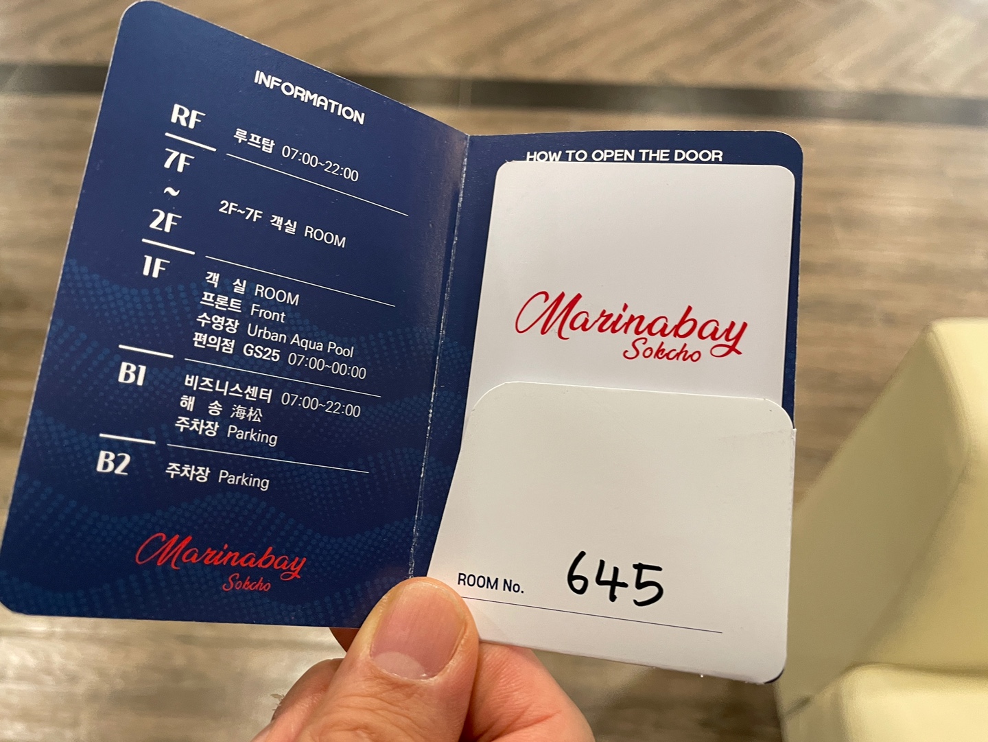 룸카드키를 받았고, 이런 종이지갑 같은곳에 넣어주셨어요.