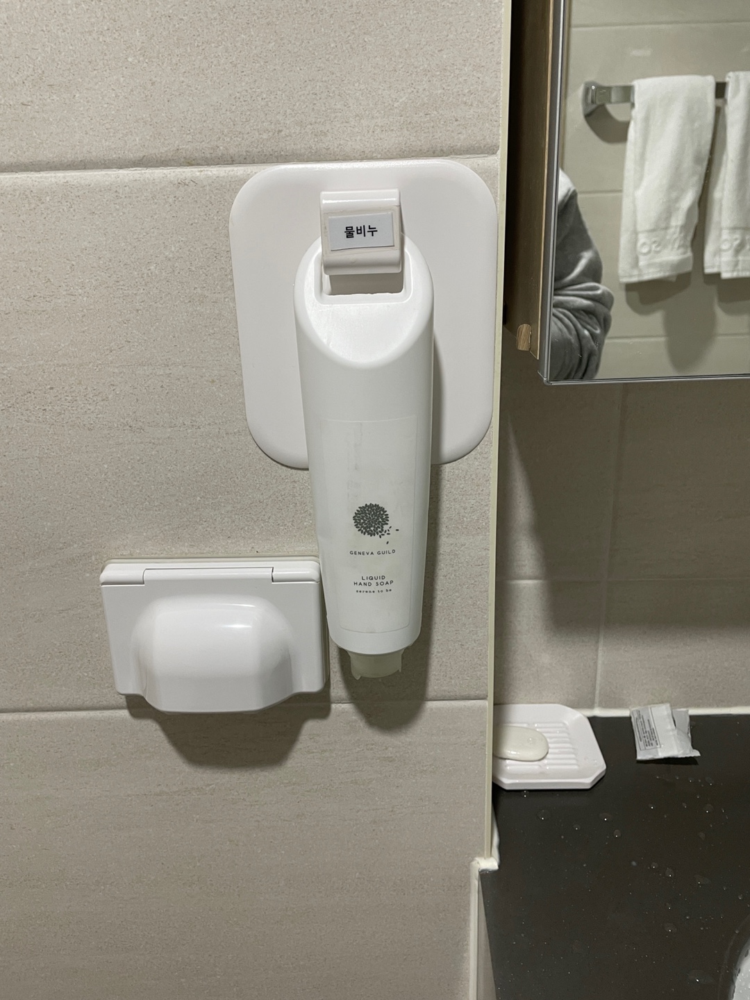 벽에 핸드워시나 샴푸 바디워시가 부착되어있어서 불편함없이 씻을 수 있었습니다.