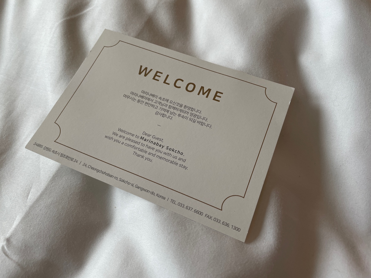 입실하니, 베드 위에 이런 웰컴레터가 있었네요.