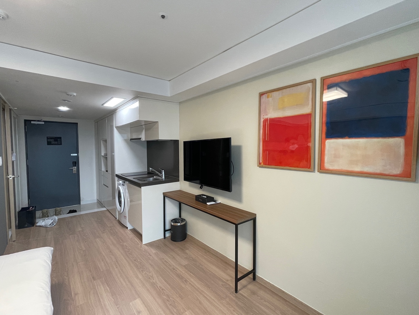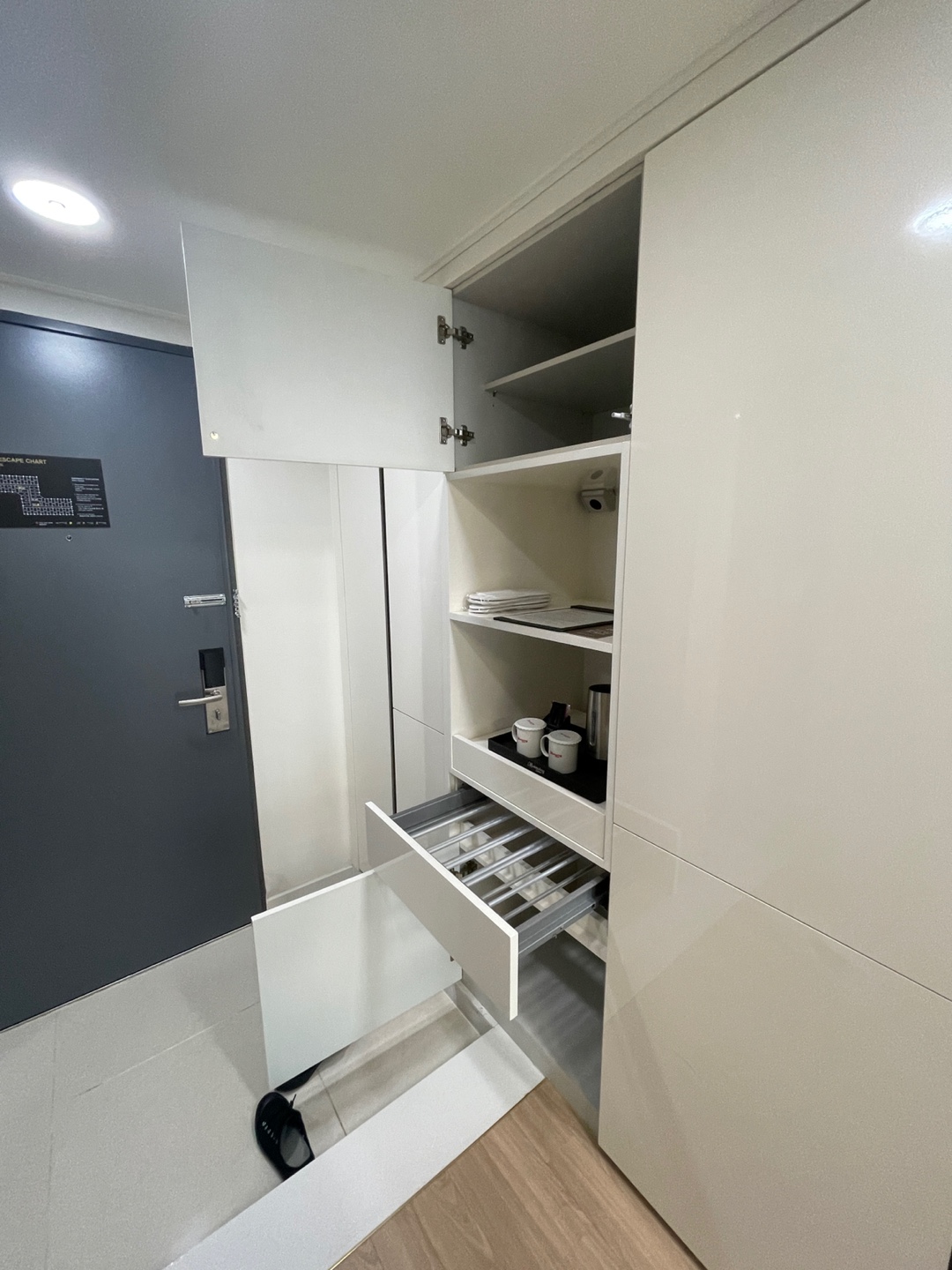 간단하게 전기포트에 커피나 차도 마실 수 있고, 긴 코트를 걸수있는 옷장도 있으니 너무 편리했습니다.