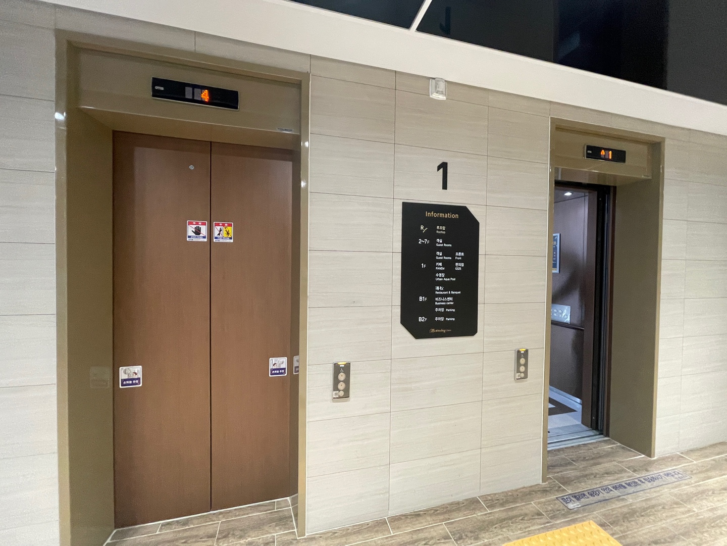 이제 엘레베이터 타고 입실하면 됩니다. 주차장에서 연결된 엘레베이터도 있어서 편리하게 이용할 수 있었구요.