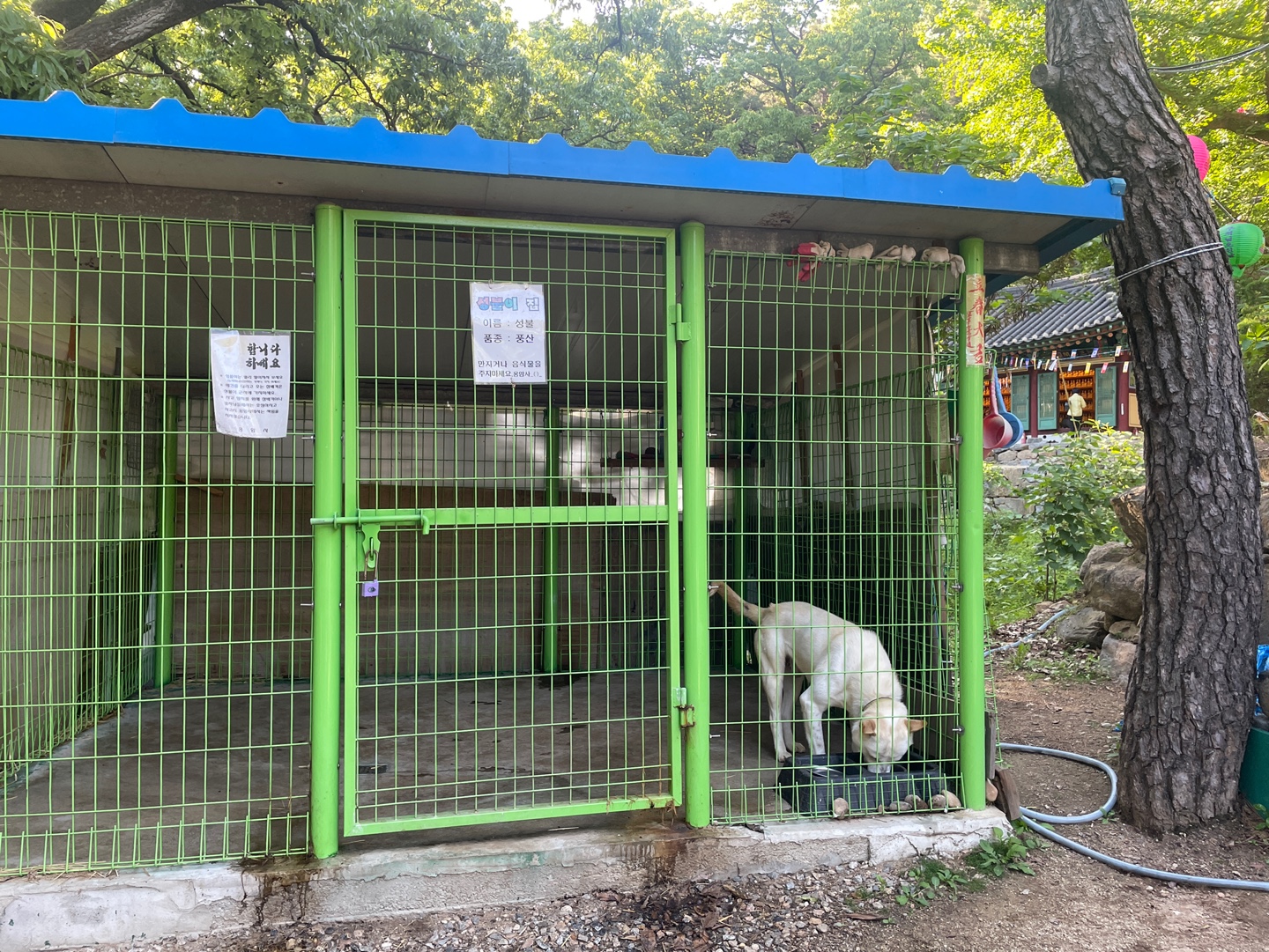 입구쪽에 풍산개 '성불'이가 있습니다.