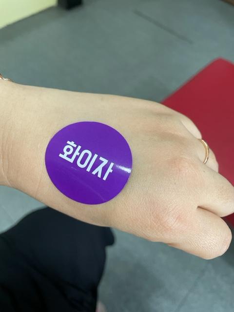 앞아서 대기 하시면, 아래처럼 화이자 스티커를 손등에 붙여 주십니다.