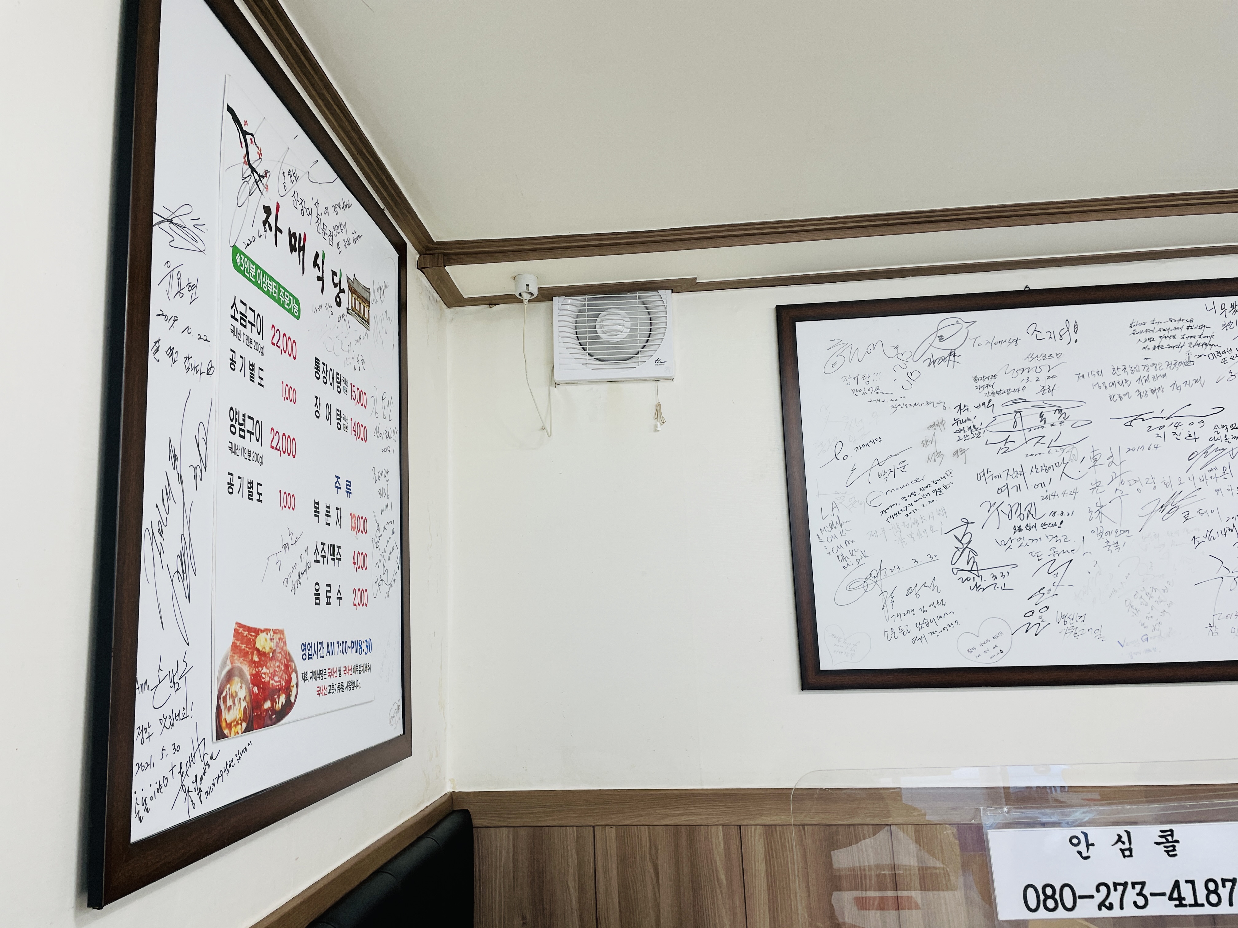 벽에 유명인분들이 방문하셔서 싸인 해놓으신 액자가 있더라구요!