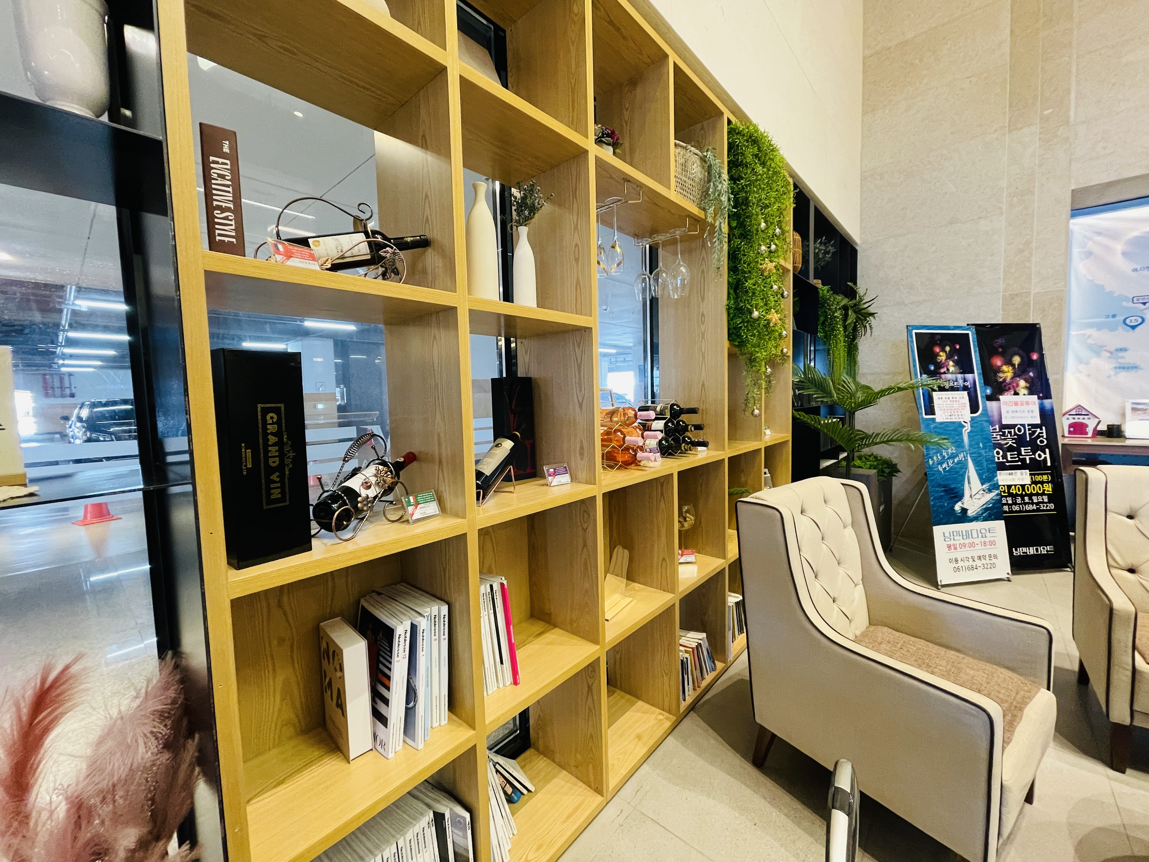 쇼파에 기대 잡지나 책을 잠깐 볼수도 있고, 투어 상품들도 구경할 수 있게