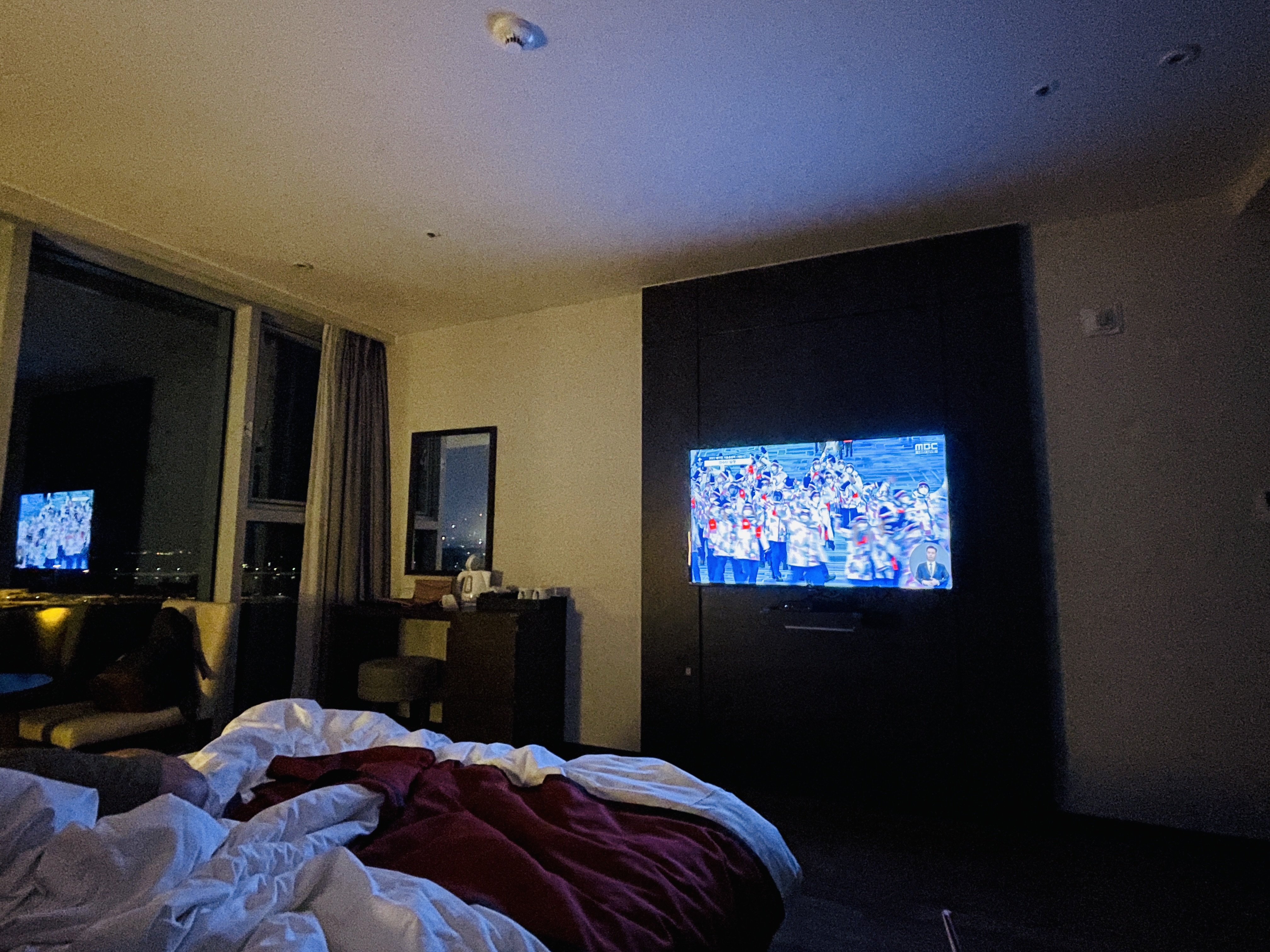 방안에 모든 불을 끄고, TV 만 켜두었는데요.