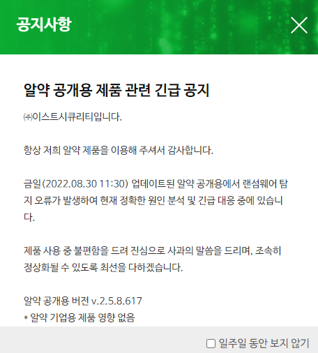 2022년 8월 30일 2-3시 즈음 저희 회사를 멘붕에 빠뜨린 하나의 팝업창 ㅋㅋ