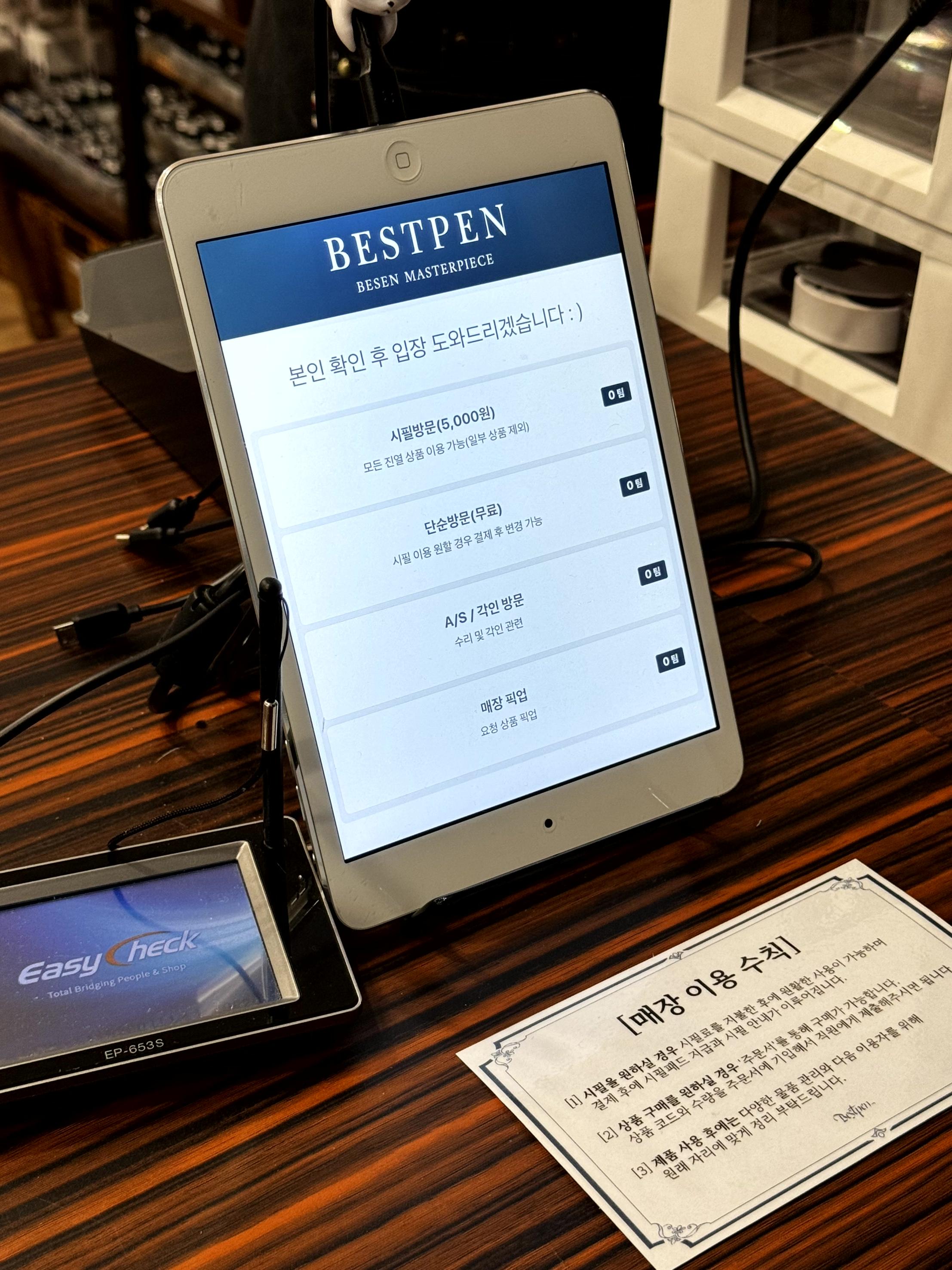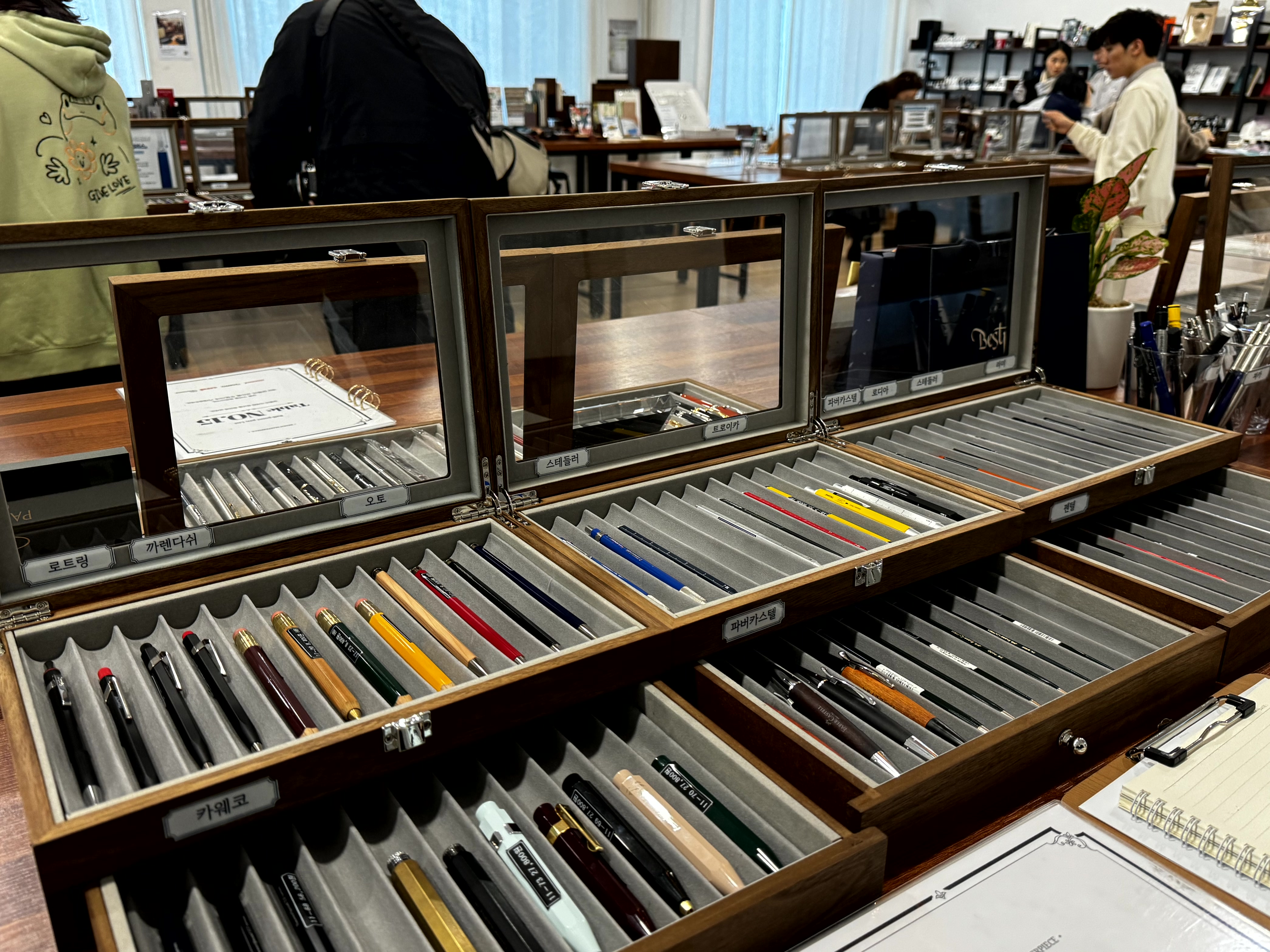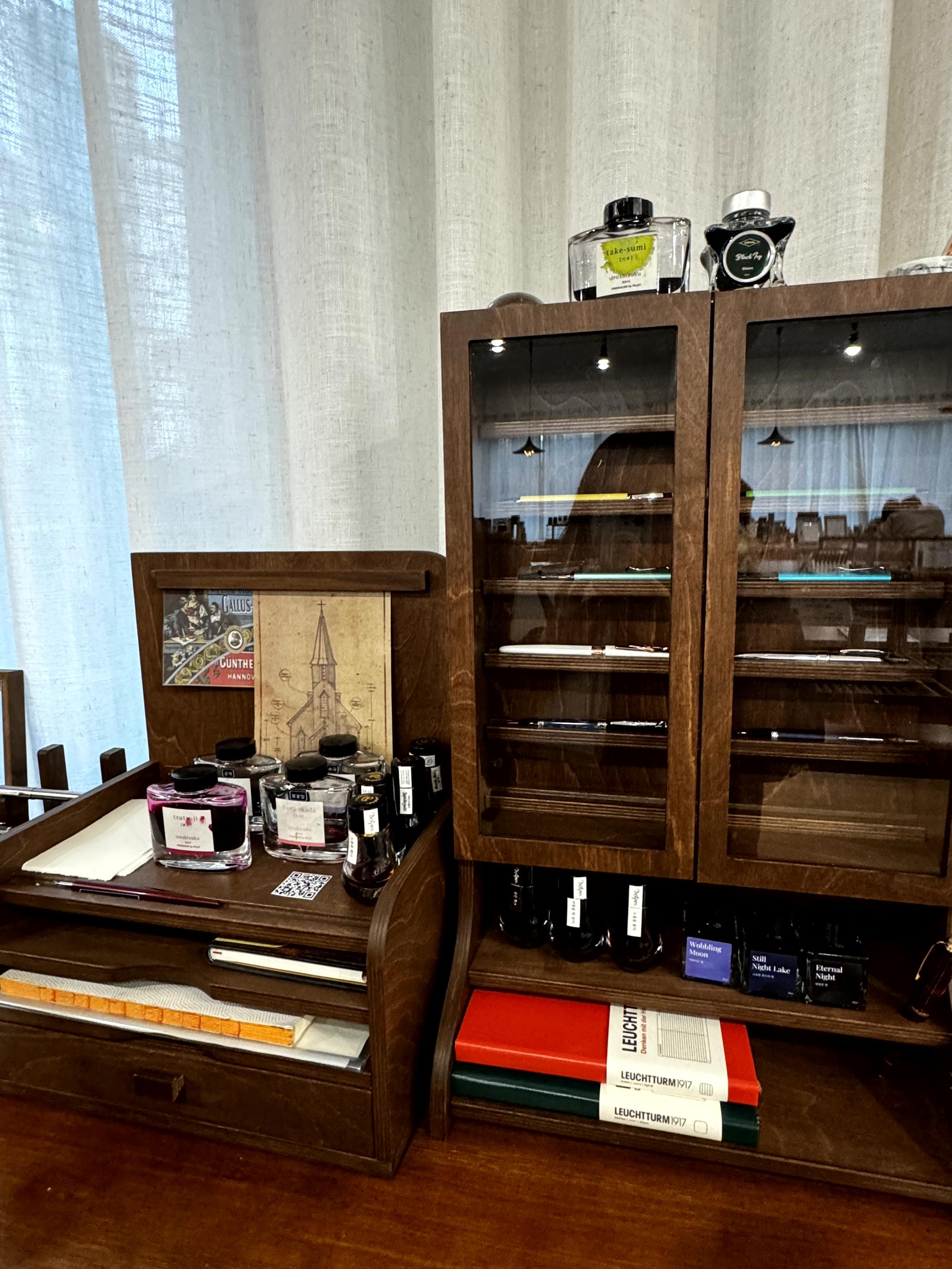 시필해볼 수 없어요. 그러나 가까이서 만져볼수는 있으니 만년필 입문자들 또는