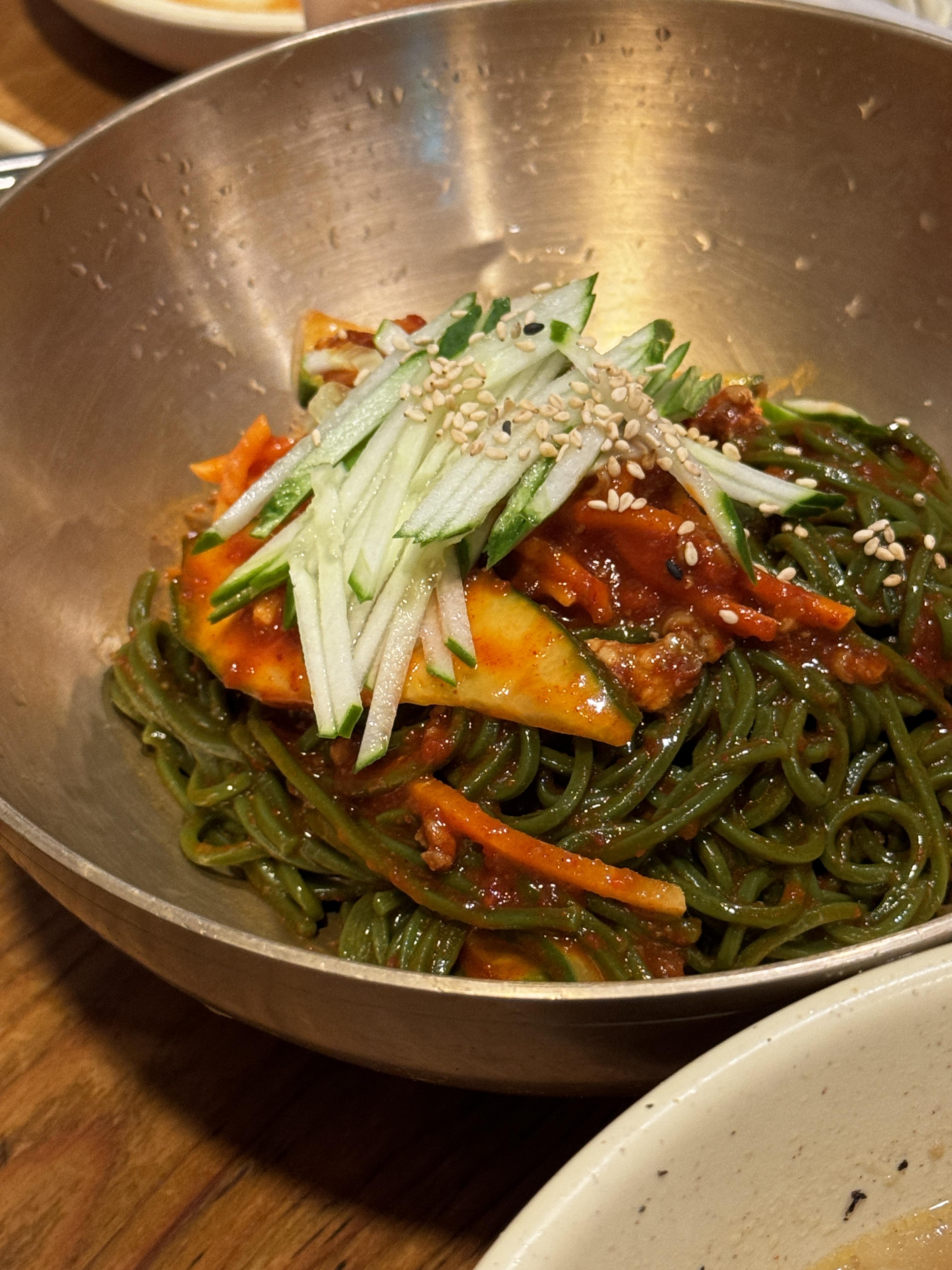 비빔국수도 클로렐라 면으로 되어있고, 면발이 엄청 쫄깃쫄깃 하더라구요 ㅋㅋㅋ (사진도 쫄깃해보이네요)