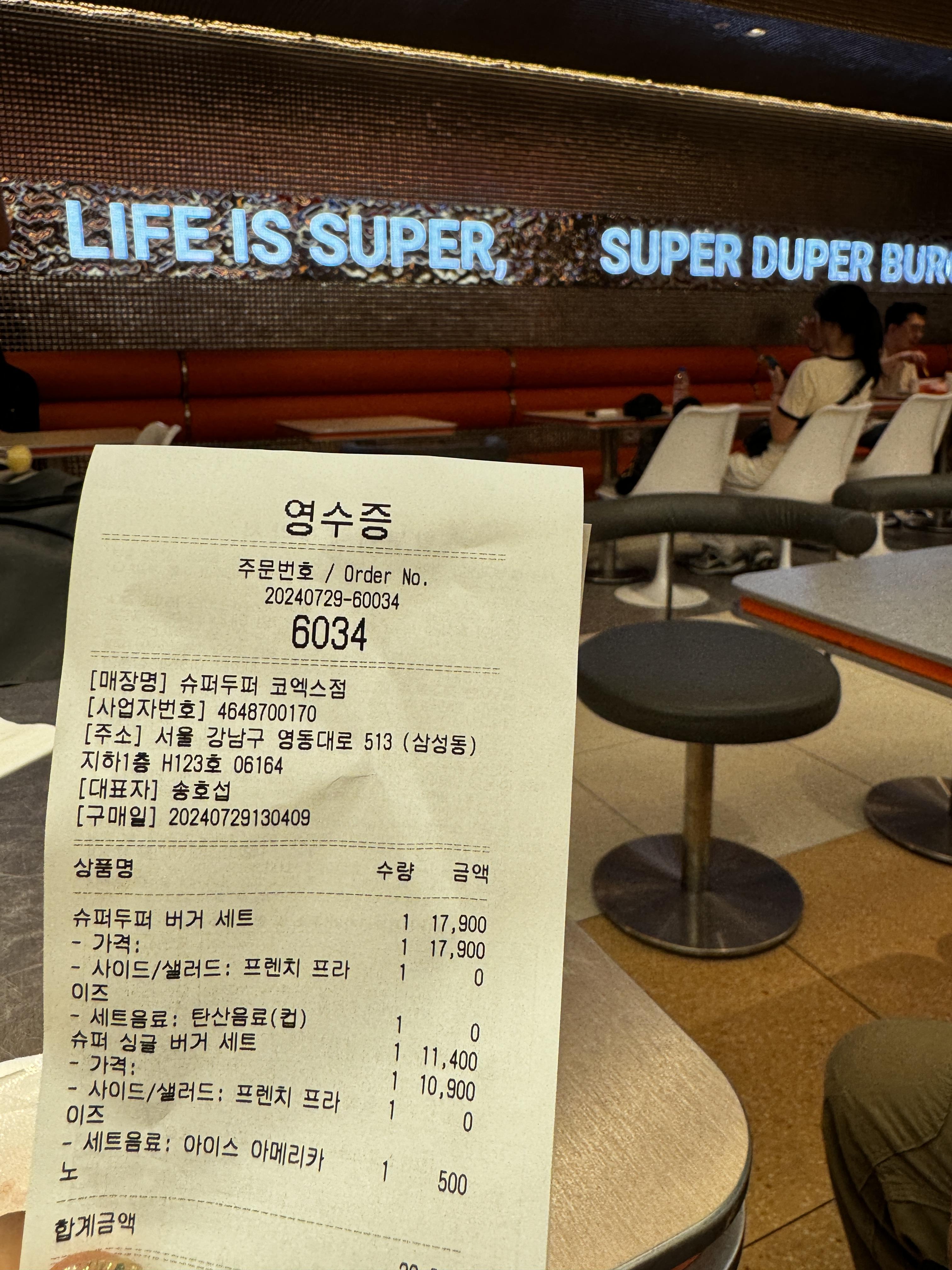 슈퍼두퍼에 왔으면 ㅋㅋㅋ슈퍼두퍼 버거를 먹어야 겠죠? 크크
