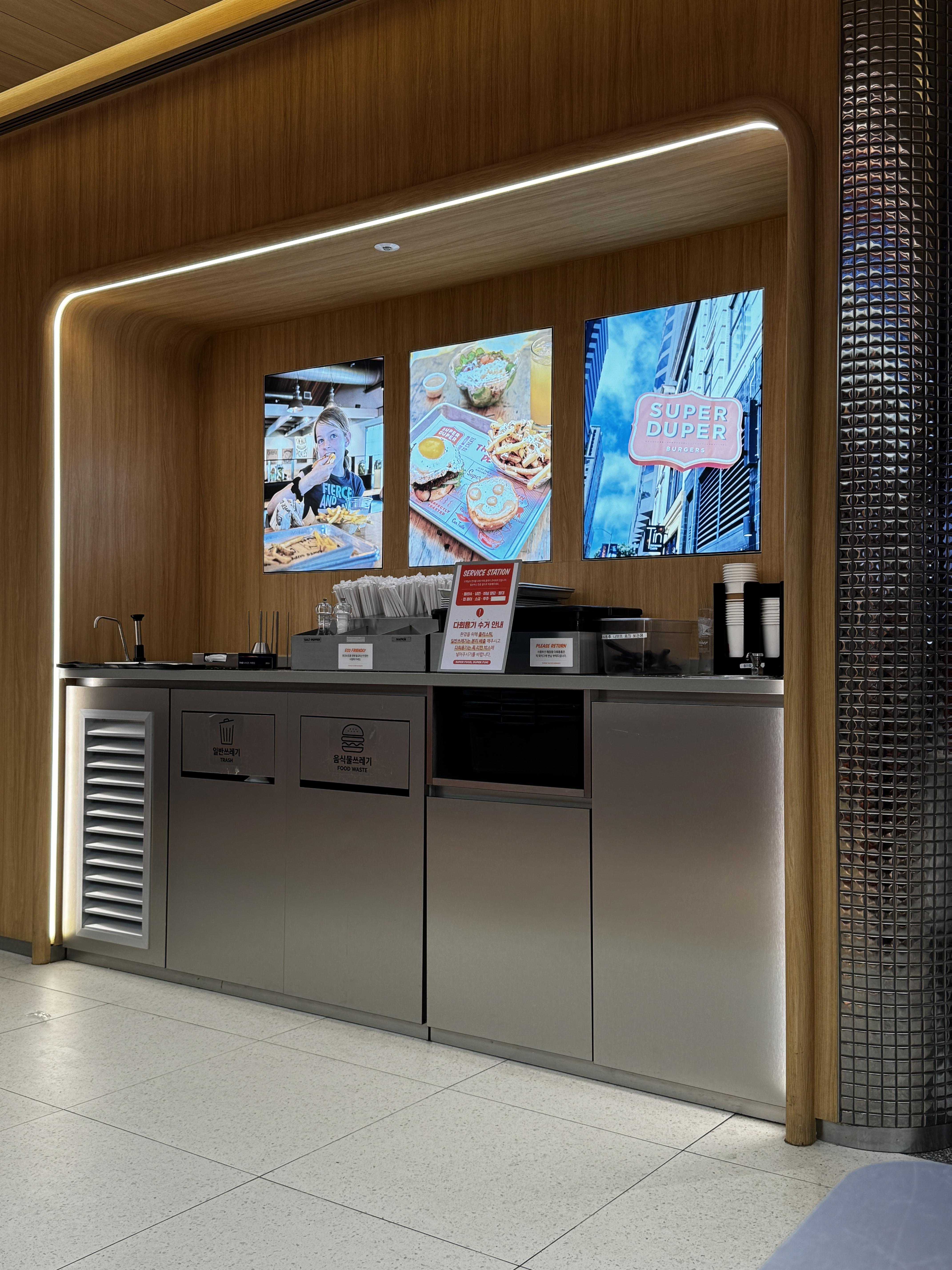 서비스 스테이션에서는 물티슈, 냅킨, 비닐장갑, 빨대, 컵홀더, 소금, 후추, 케첩등