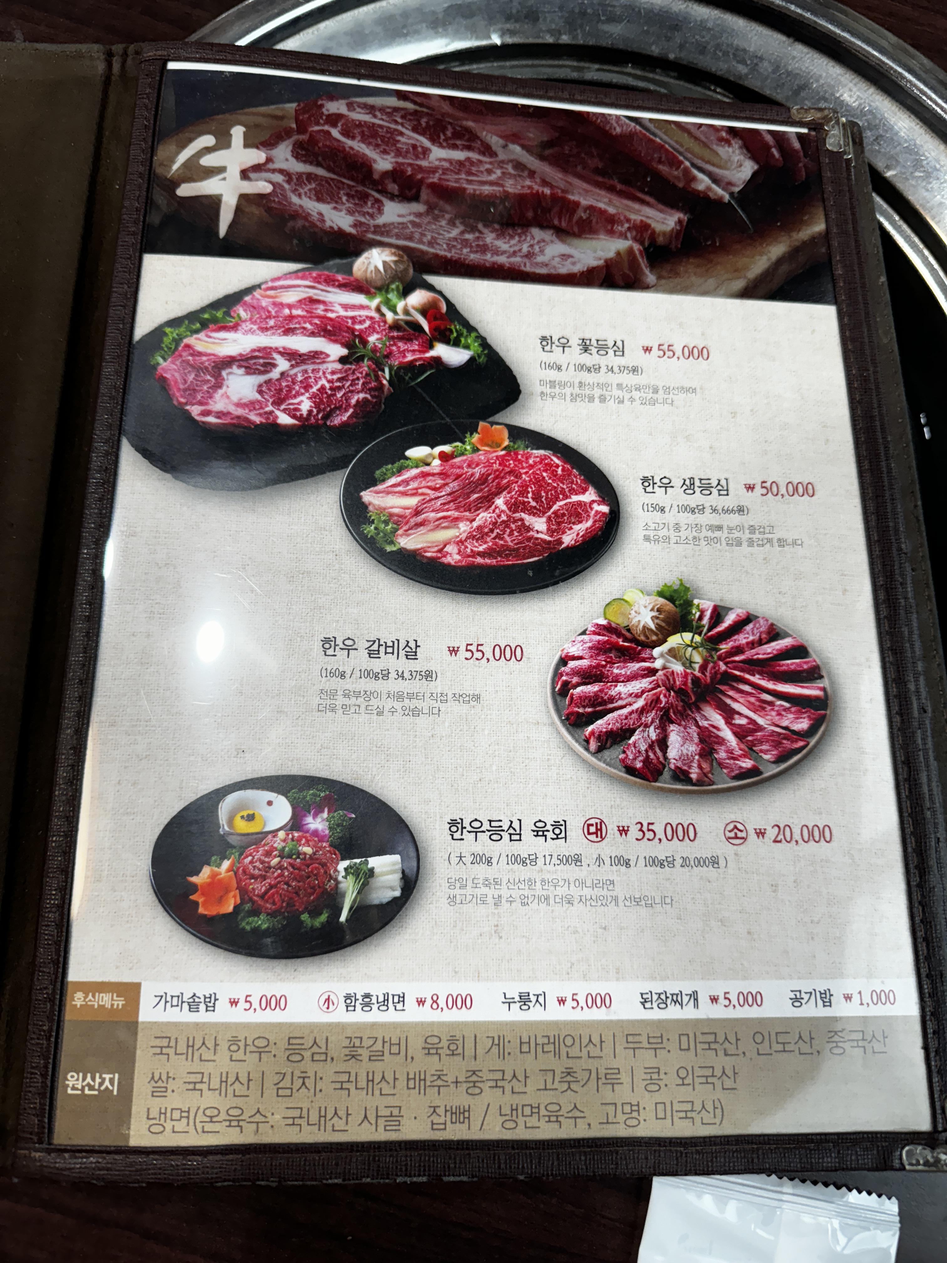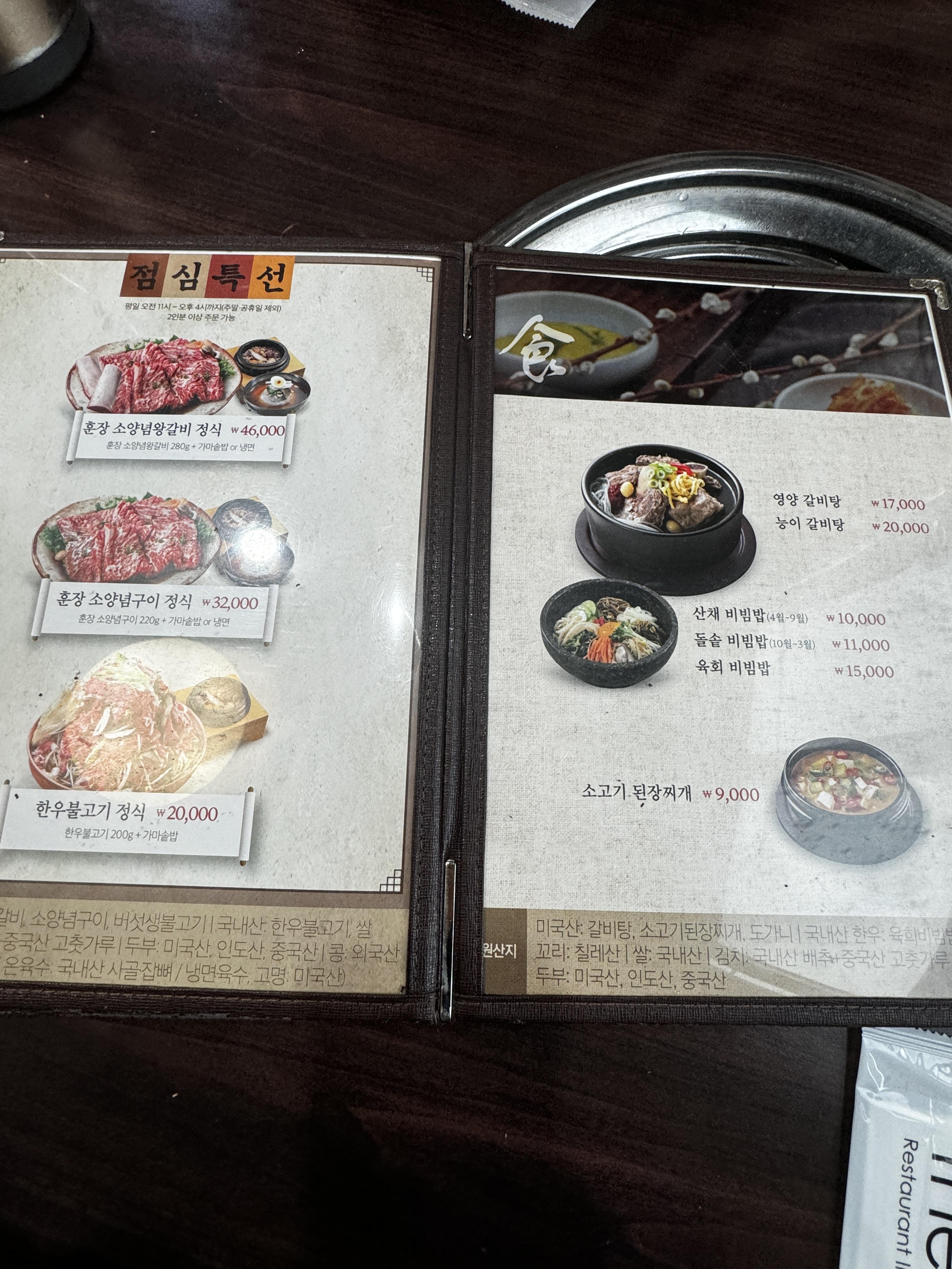 소고기/소갈비/돼지갈비 육회 또, 식사로는 갈비탕과
