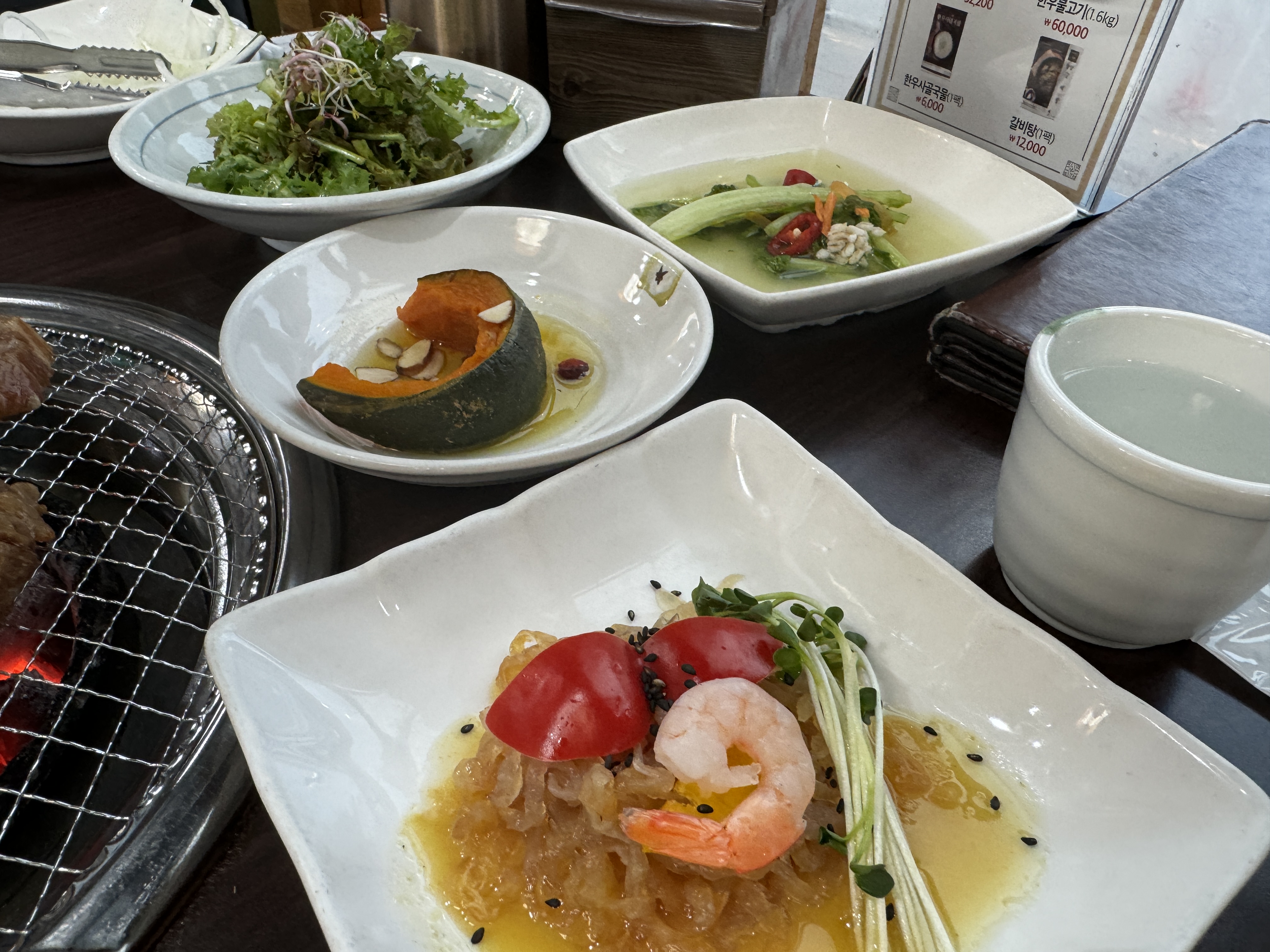 해파리냉채, 샐러드, 열무김치, 단호박찜 ㅋㅋ