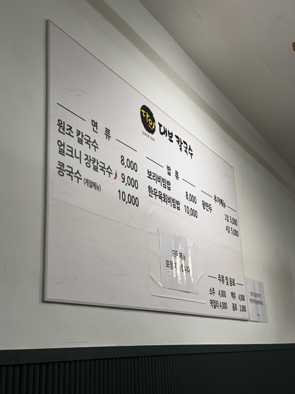 면은 직접 반죽하셔서 뽑는 것 같고, 칼국수는 약간 시간이 걸리지만 그만큼 기대도 커집니다.