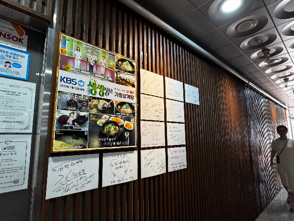 기다리는 동안 가게 앞에 연예인 싸인들이 쫘악~ 붙어 있어서 구경하는 재미도 있었네요.