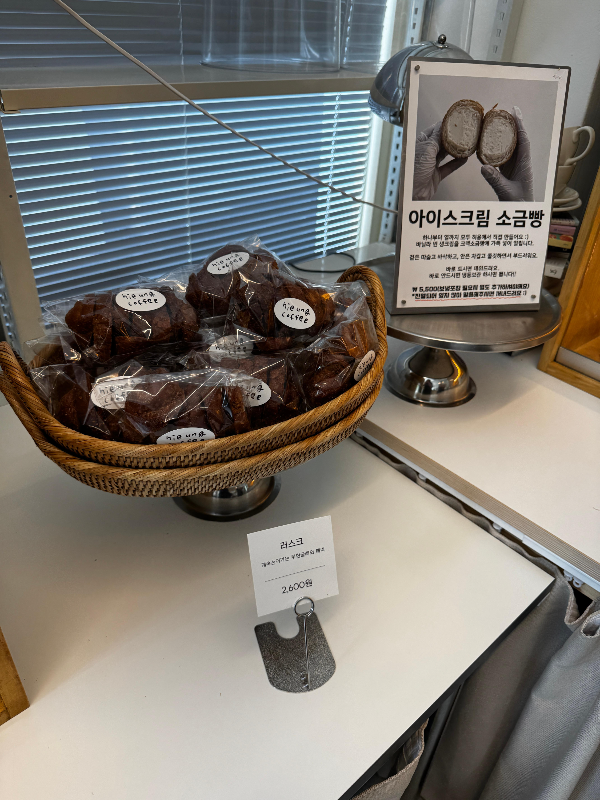 제가 첫 손님으로 입장해 소금빵을 구매하자마자 또 다른 손님도 오셔서 바로 소금빵을 사 가셨답니다.