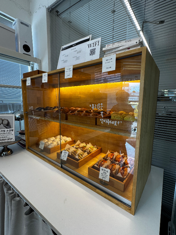 그때 인기 실감 제대로 했죠. 평일이라 한적하게 빵을 고를 수 있어서 기뻤습니다.