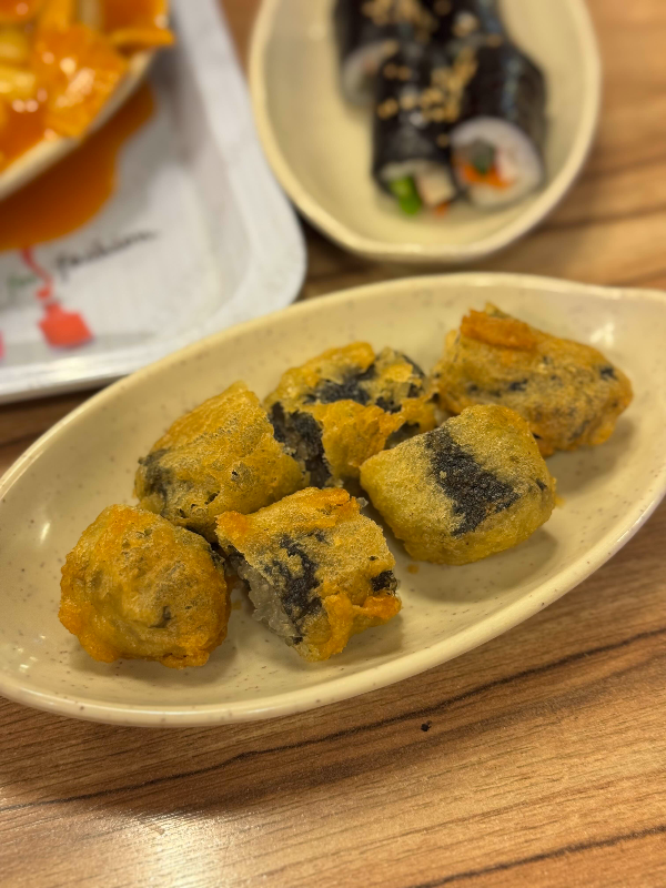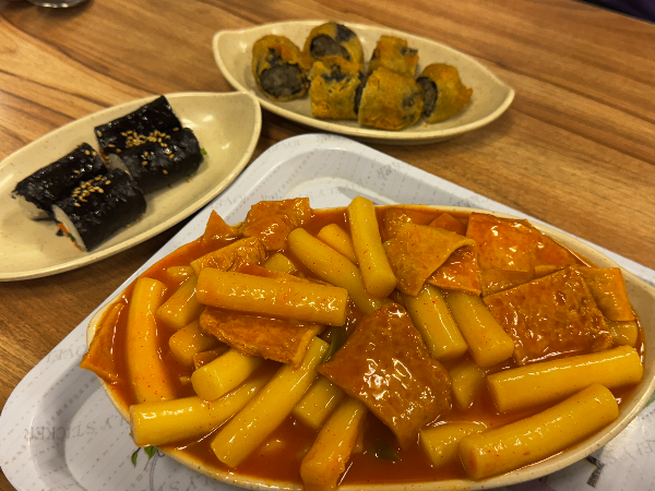 배가 많이 고팠지만, 하얀 떡볶이 2인분, 꼬마김밥, 김말이로 허기를 달래 보기로 합니다!